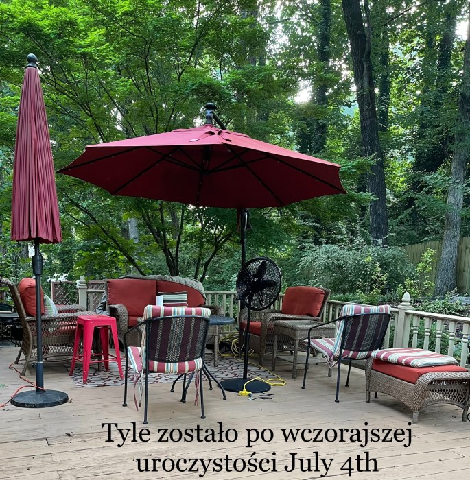 Od piątku do piątku mam urlop. Będę odpoczywać i leniuchować. Pogoda podobno od jutra deszczowa, więc czas będę spędzać na praniu, organizowaniu, przestawianiu i przekładaniu z jednego miejsca na drugie. Schowam się w łóżeczku z książką aby nie stukać, pukać, śpiewać i głośno ziewać, przeszkadzając MM podczas konferencji. Może lunch zrobie pracusiowi a może wyskoczymy na południowe jedzonko. To nawet nie plany to jest moja układanka. Może wszystko wydarzyć się inaczej i wyskoczę na front z farbą i pędzlem, bo pogodynnek znów był w błędzie. Dokończę malowanie to co MM nie zdążył, nie miał czasu a może chęci.