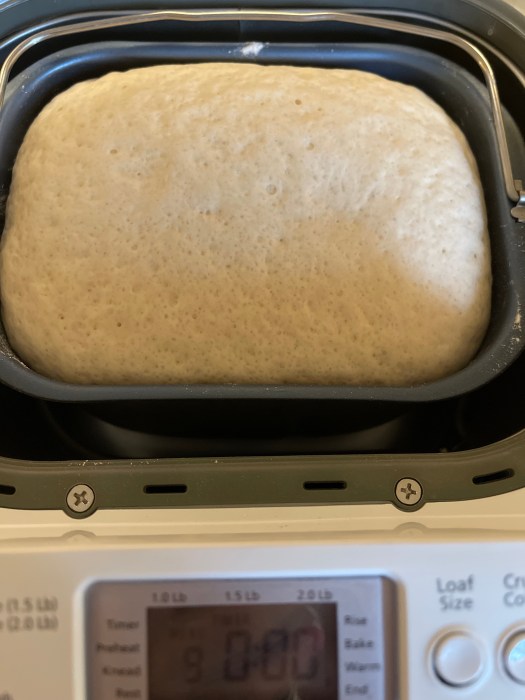 Kobieta zmienną jest. Krzewy poczekają. Wyjeżdżam na shopping, bardziej atrakcyjne zajęcie. Omal zapomniałabym o chlebku, gdyby nie timer. Zapiszczał przeraźliwie, oj chlebek!!! Musiałam się zatrzymać na godzinę. Chlebek potrzebował następnych minutek do podrastania w foremce i oczywiście pieczenia. Tym razem microfale leciutko pogrzałam i przykryte ciasto workiem foliowym wstawiłam do środka.