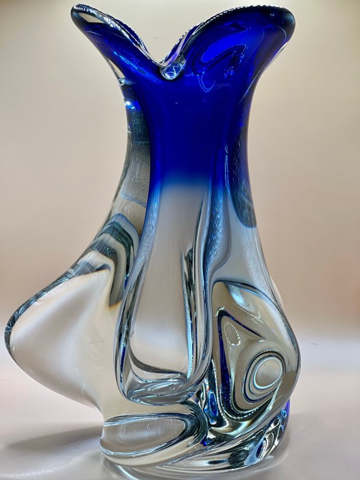 W moim stanie nie ma kolorowego szkła, jeśli się trafi, to daleko wzorem do tego co lubię. Wzór wazonu jest z lat 60-70. Podoba mi się bardzo, bardzo.