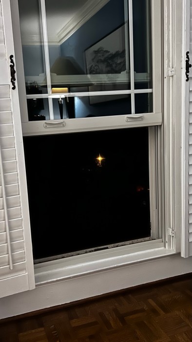 Okna otwarte, jakieś owady jeszcze skrzeczą, w oddali słychać wycie syren policyjnego pojazdu i ja z lampką wina w dłoni oddycham świeżym, rześkim powietrzem. Temp. 23C a godz. 9pm. Dziś obowiązkowo będę spać przy otwartym oknie ale od góry.