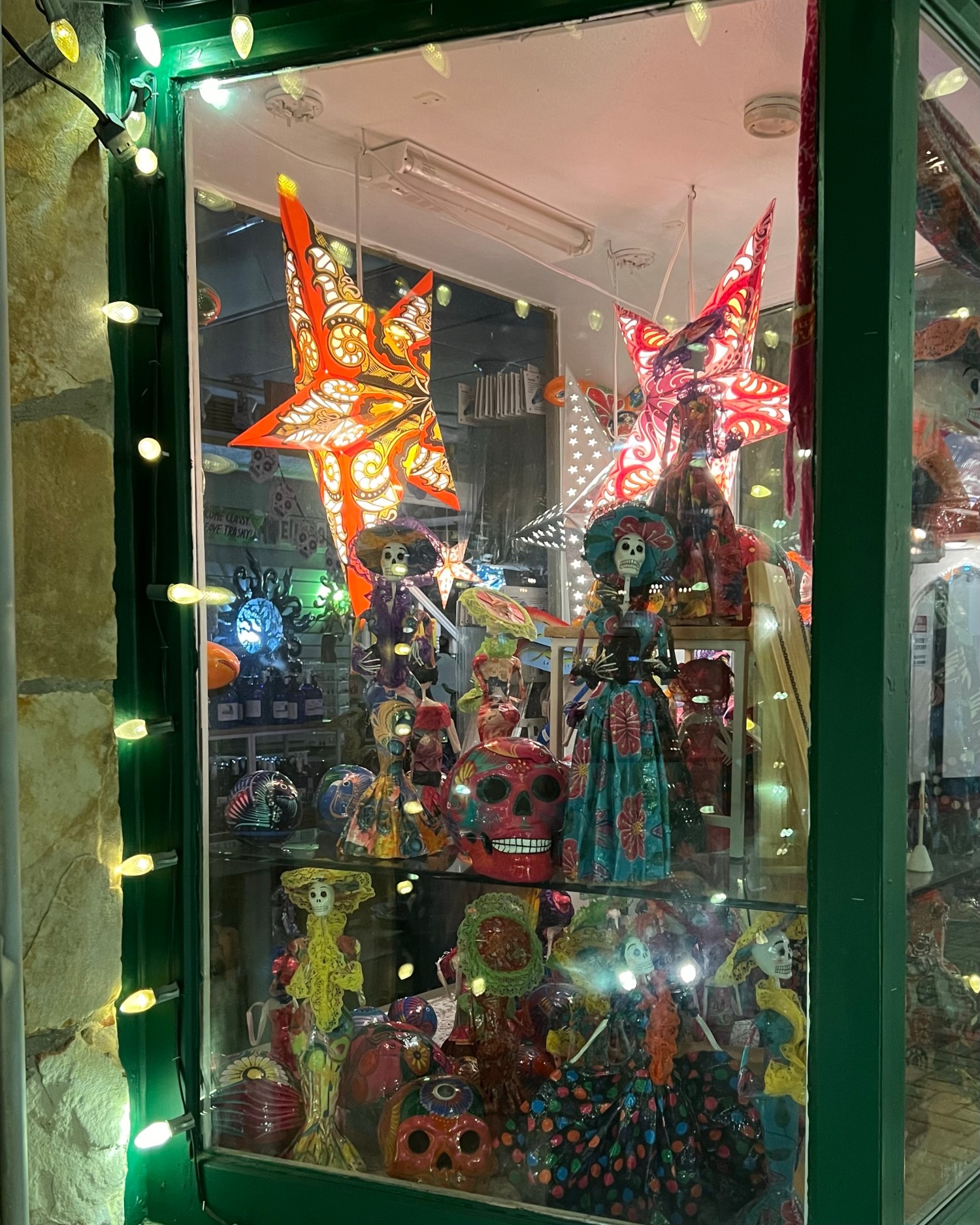 Żeby zrobić zdjęcie musiałam dość długo czekać na przerwę w „ludzkiej rzece, podobnie z samochodami. Śiwąteczne ozoby były piekne ale niestety wszytkiego nie dało się sfotografować ze względu na ilośc przwechodzących ludzi/turystów. Corcia podpowiedziała, że jest sklep lub baro/restauracja ale w środę było zamknięte, więc zajrzałam do tego obiektu. Dlaczego nazwałam to objektem, bo trudno było sprecyzować co to było, raczej nic ciekawego. trzy stoliki przy nicj krzesła, pani za kotarą wyjrzała lae tak jak weszłam tak wyszłam bo oprócz tej pani/pracownicy/właścielki tam nie było. Nadziwniejsze, że i zapachu dań nie było. Co było oferowane moż danie pod nazwą powietrze na talerzu lub wylizany talerz.