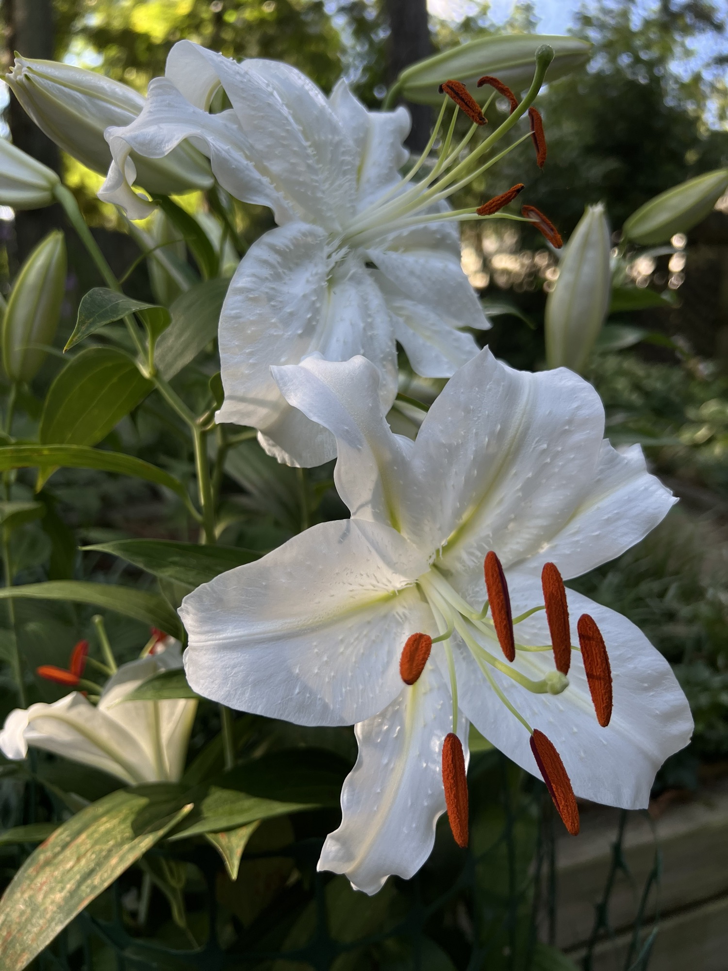 Różowe cudnie pachnące lilie przekwitły jako pierwsze, białe gubią płatki, Kalia, którą mam w różnych kolorach, również męczona jest wysokimi temperaturami i zmienia kolor liści z zielonych na żółte.