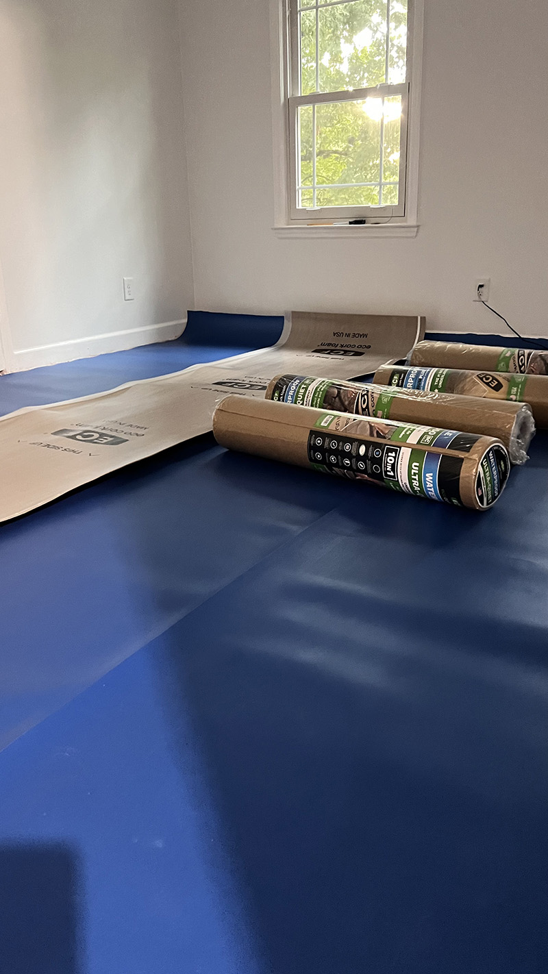 Natomiast czasu mi jeszcze zostało do wieczorka, więc rozłożyłam podkłady wygłuszające pod podłogę którą będę układać. W zasadzie mogłabym ten niebieski tylko ułożyć ale, że to jest office MM, pozwolę ułożyć dodatkowo korkowy podkład.