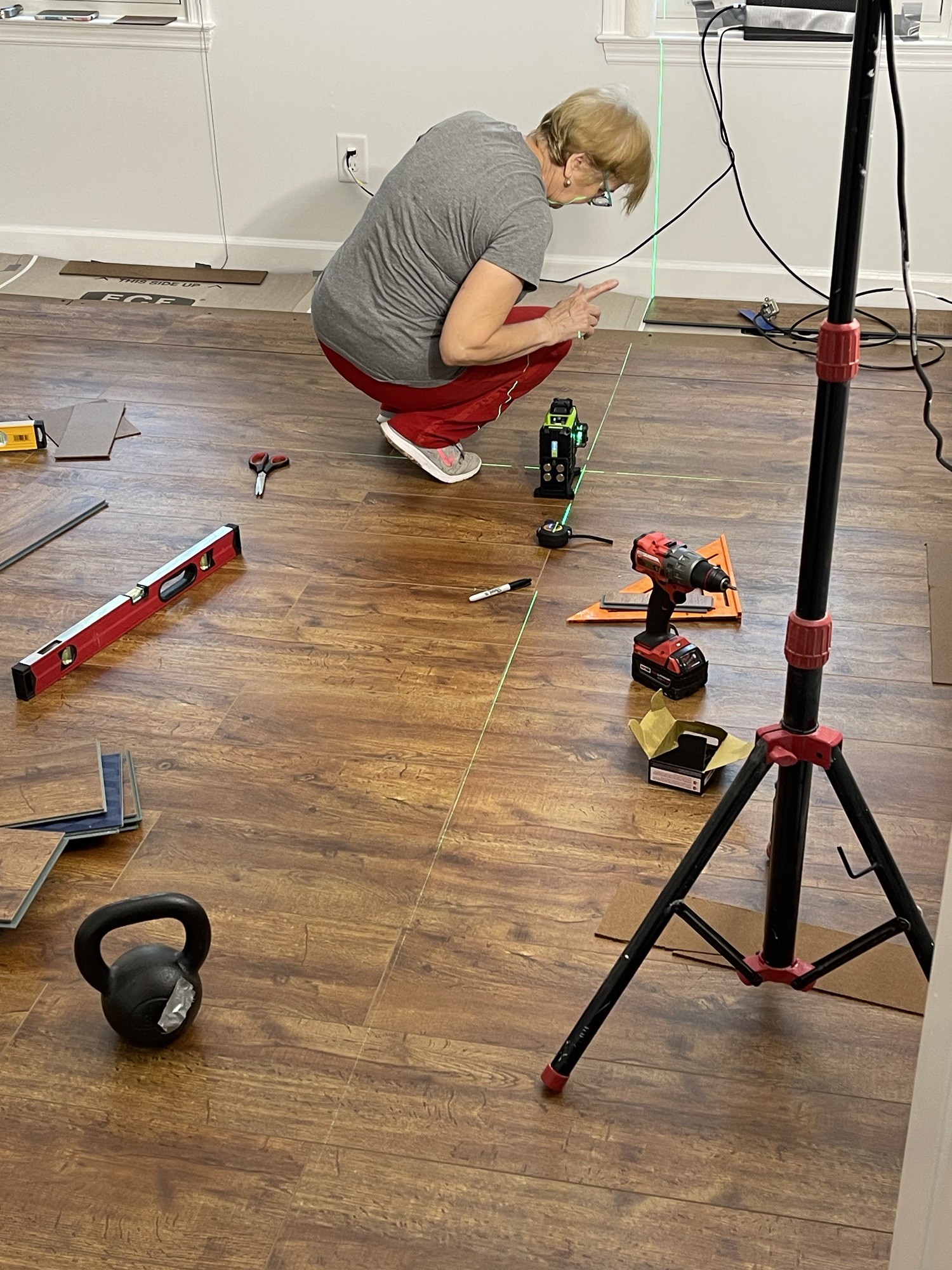 Do środka pokoju układanie było przyjemnościa i aby podłoga byłaby tak równa w każdym jej punkcie w kilka godzin praca byłaby zakończona. UprzedzałamMMa, na środku jest dół oraz po prawej stronie bliżej okna. Po lewej stronie okna jest góra. Te oba punkty należy tak połączyć aby poziom z progiem i holem był zerowy.