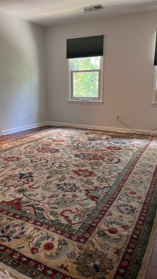 W sumie to rozkręciłam łóżko. Wyniosłam na hol. Odkurzyłam dywan i przy pomocy MMa wyciągnęłam brzegi dywanu z pod szafek i biurka. Do połowy dywan skręciłam i potrzebowałam pomocy bo już było mi za ciężko. Podłożyliśmy pod dywan folię i po niej powoli przesuwaliśmy.
