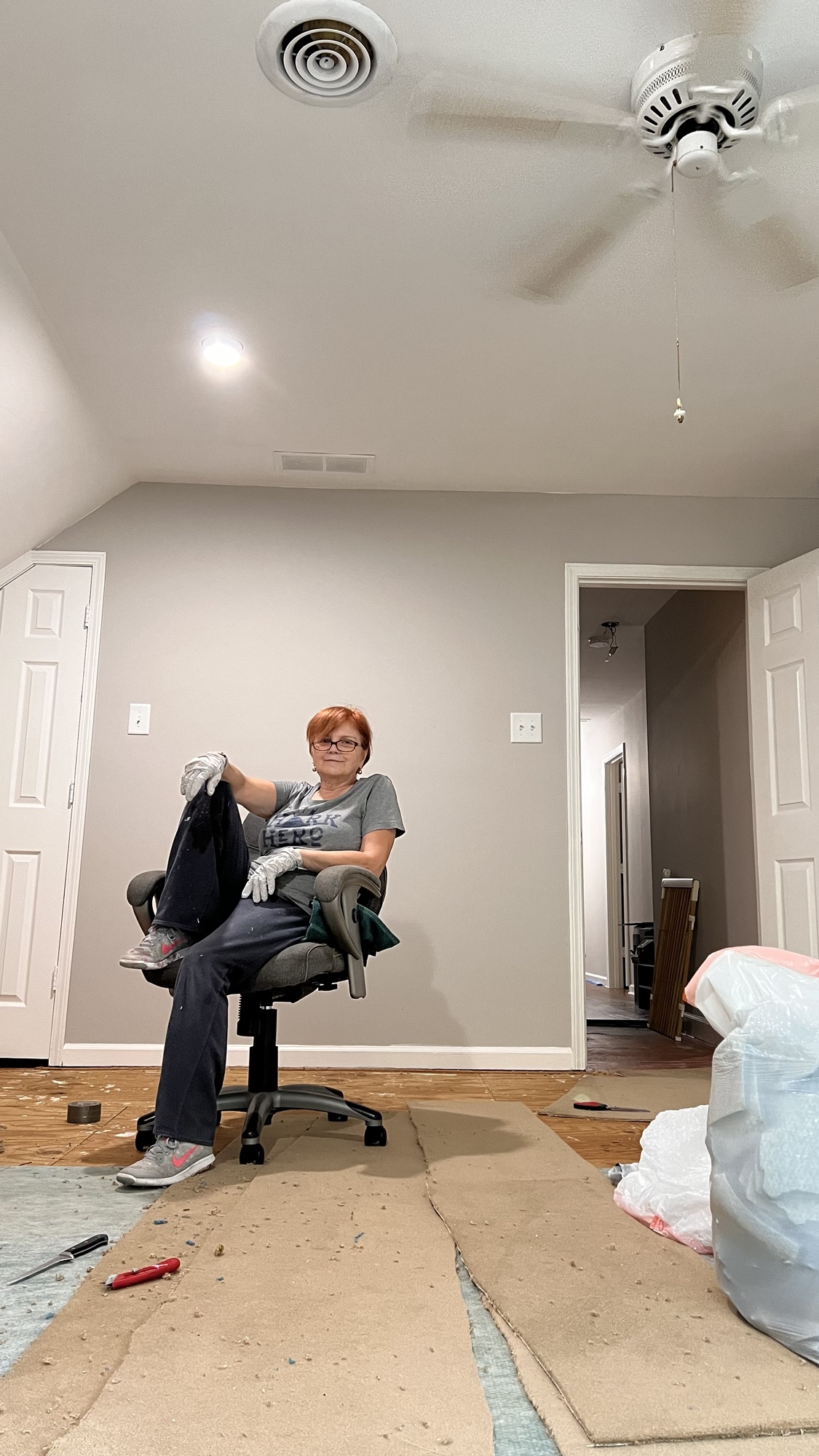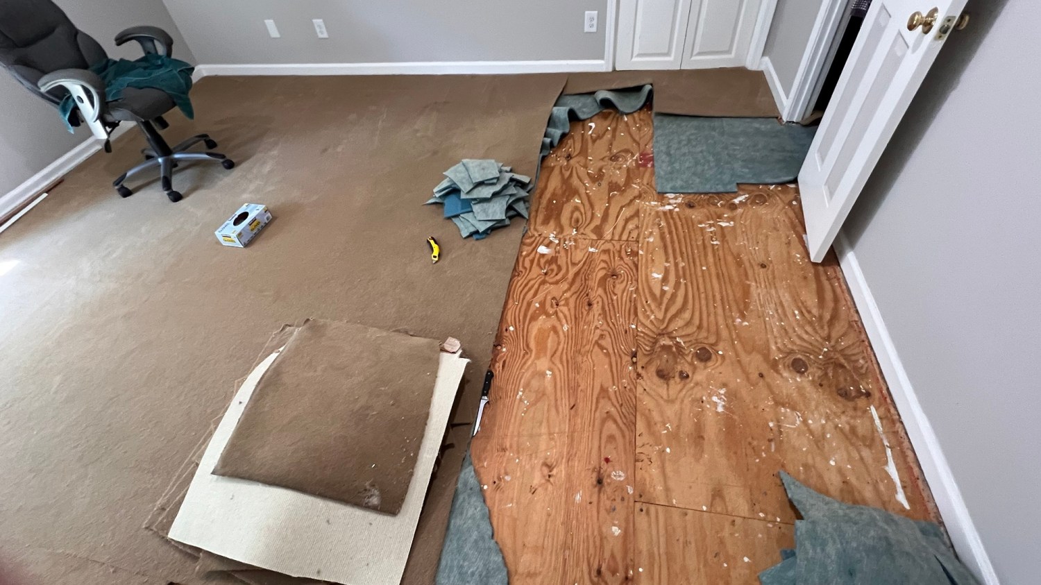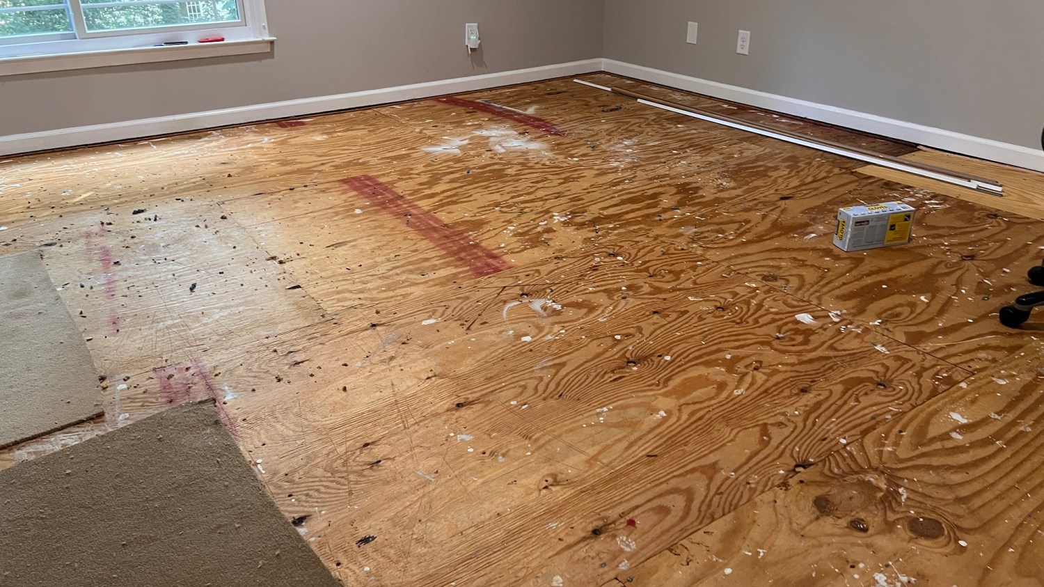 Projekt jest trudny i w czasie rozciągnięty. Mogę śmiało powiedzieć, że w 99,9% wykonuję go sama. Sprawdziłam poziom podłogi. Jest nieźle i myślę, że cementowania podłoga nie potrzebuj.