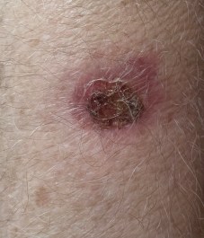 Kilka dni temu na przedramieniu MMa pojawiła się plama i co w tym najdziwniejsze, że wyglądała na uderzenie. MM nie przypominał o takim zdarzeniu, ręka nie bolała, miejsce jakoby uderzone, podczas dotyku nie było nad wyraz delikatne. Żadnego swędzenia, pieczenia czy bólu. Plama zaczęła błyszczeć i wyglądało na mokrą lecz było suche i patrząc na to miało się wrażenie wizualne, zasklepiania się. W sobotę zrobiła się większa czerwona otoczka, krąg, promień. Niedziela jeszcze większe, wysycha coś, co nigdy mokre nie było.