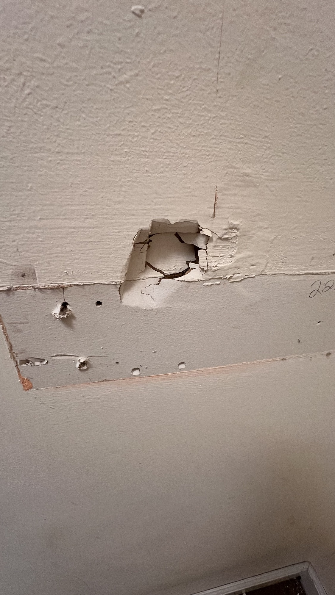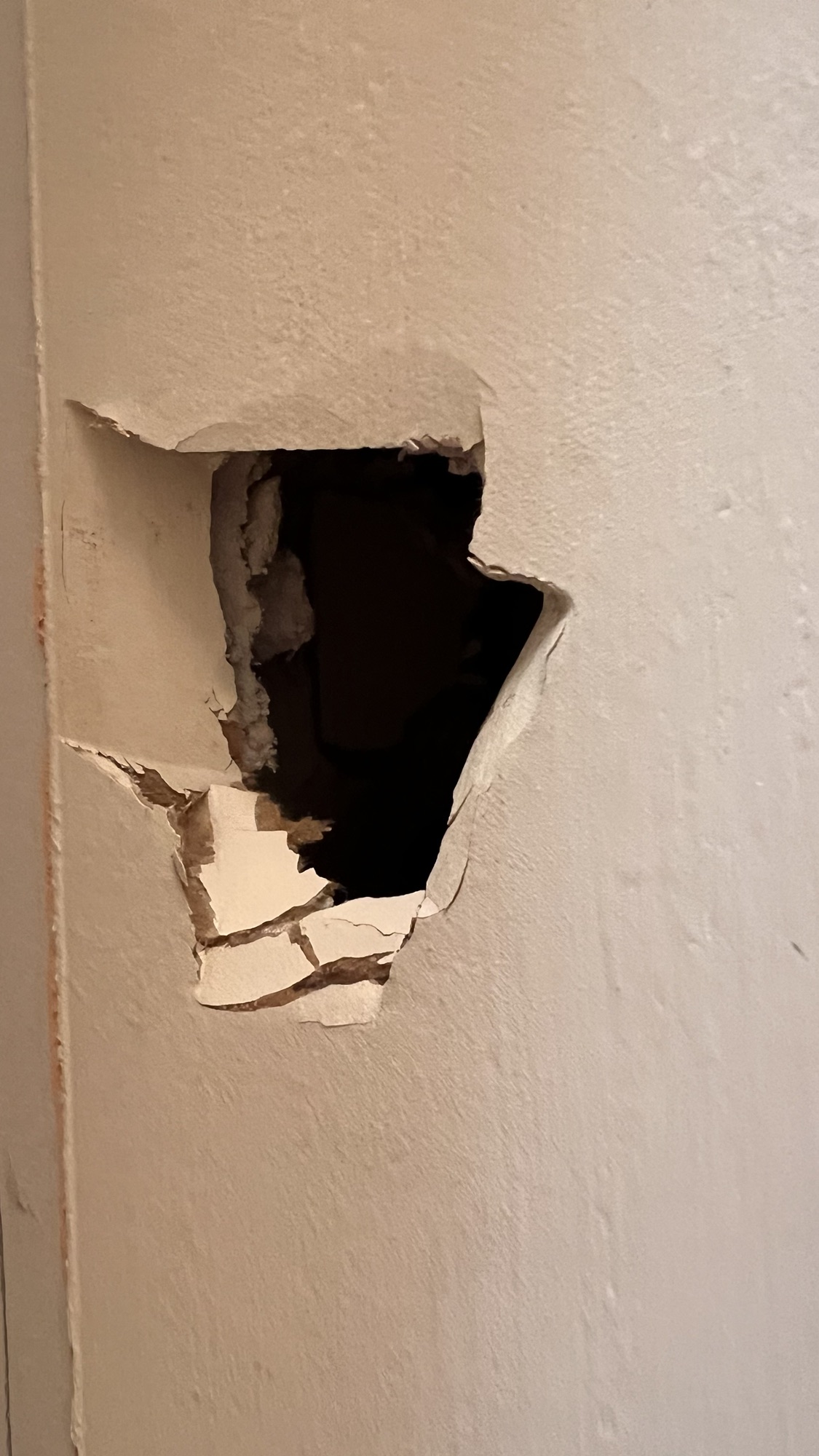 Zrobiłam dwie dziury, to są takie ściany i nie ma czemu się dziwić. Domy z dykty i papieru. W moim przypadku nie ważne z czego te ściany, będę musiała to załatać.