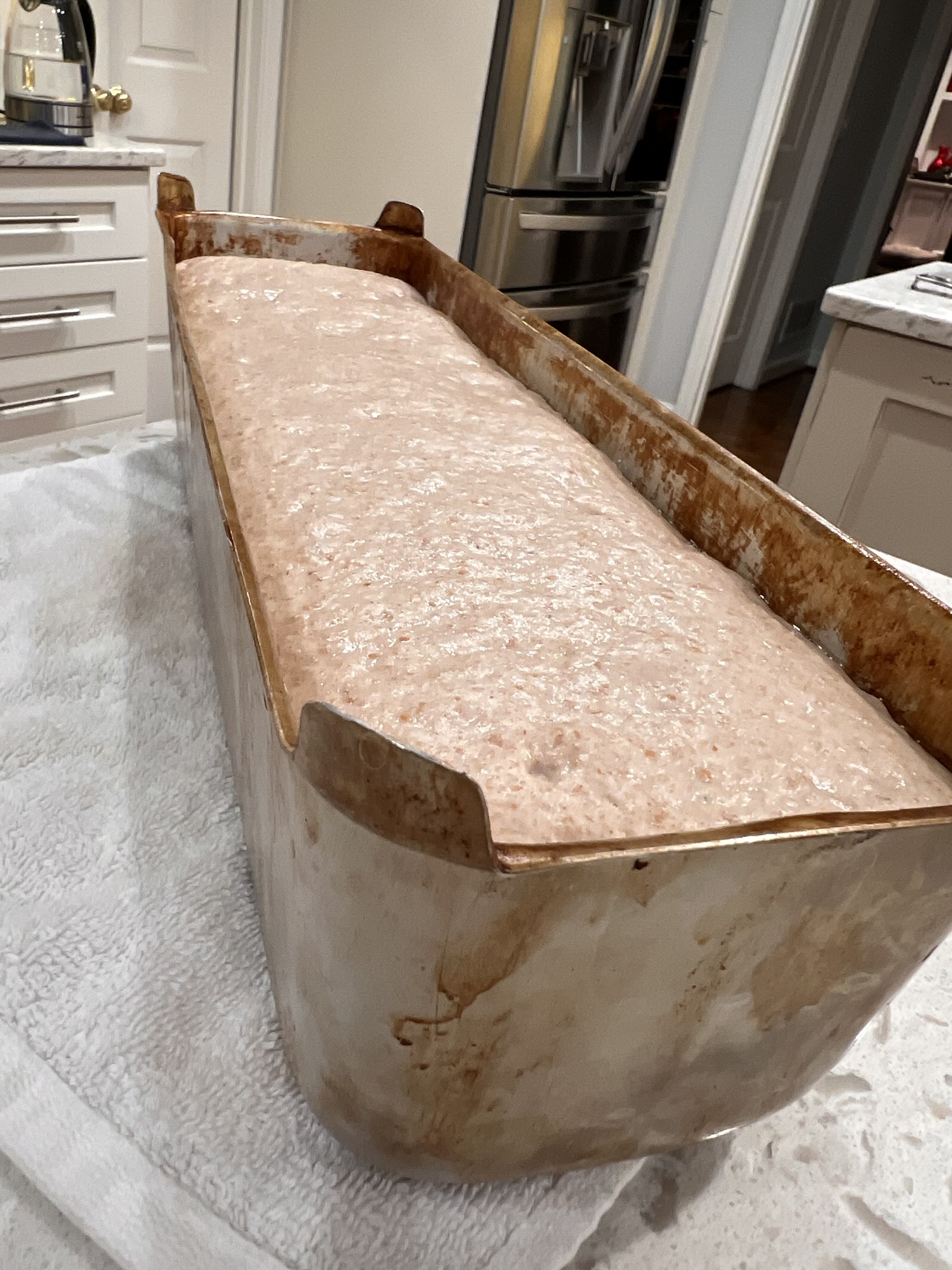 Chlebek na zakwasie, który piekłam tydzień temu jest już na ukończeniu.