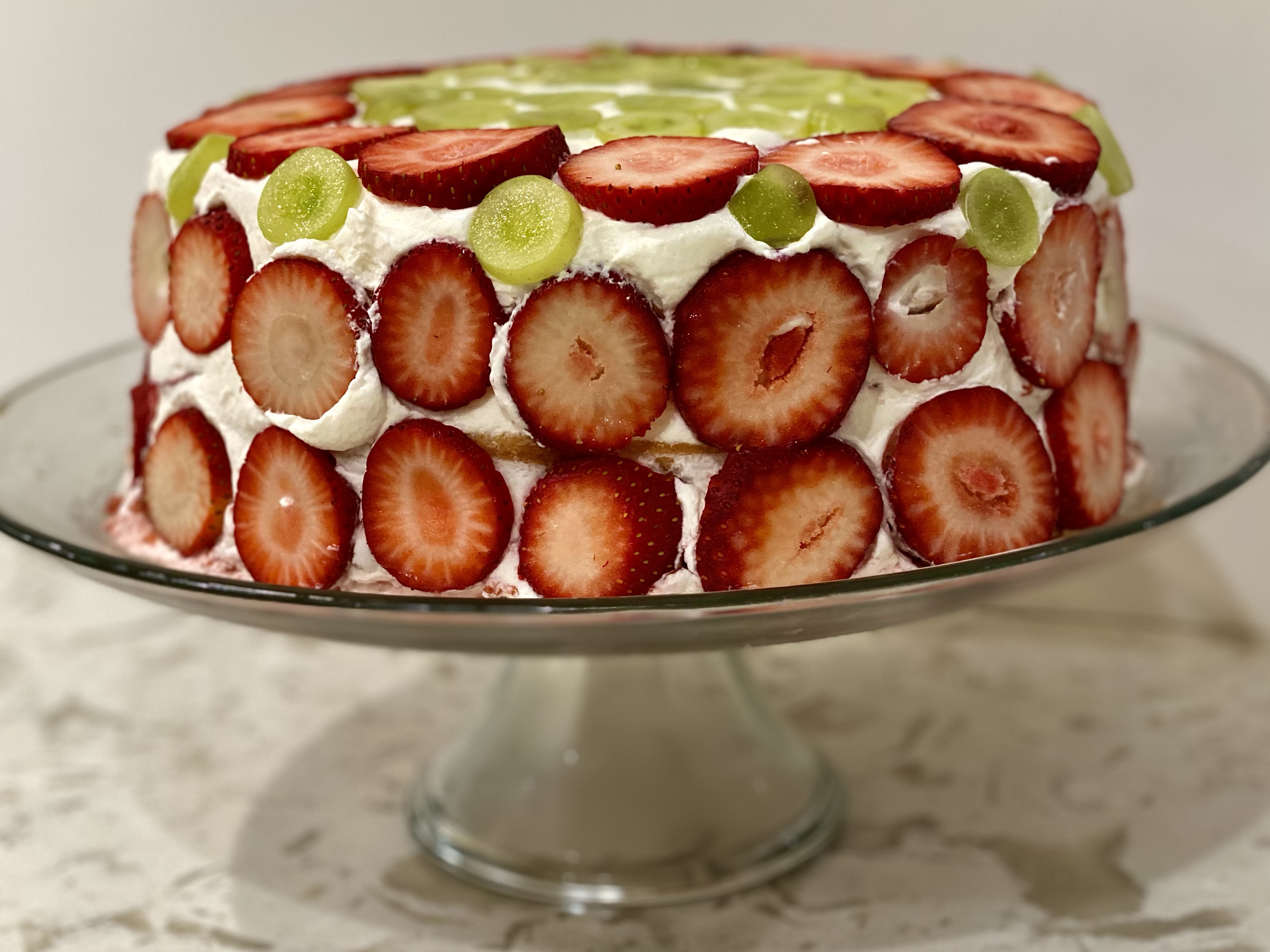 Jeszcze w pidżamie i szlafroczku rozpoczęłam robienie ciasta na torcik i karpatkę. Torcik owocowy zamówienie MM , karpatka zamówienie syna.